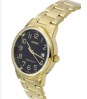 Round Resin Gold case with Analog display, Black dial 37 mm case diameter, Quartz movement, 5 ATM water resistant Gold Stainless Steel bracelet with Triple-fold Clasp