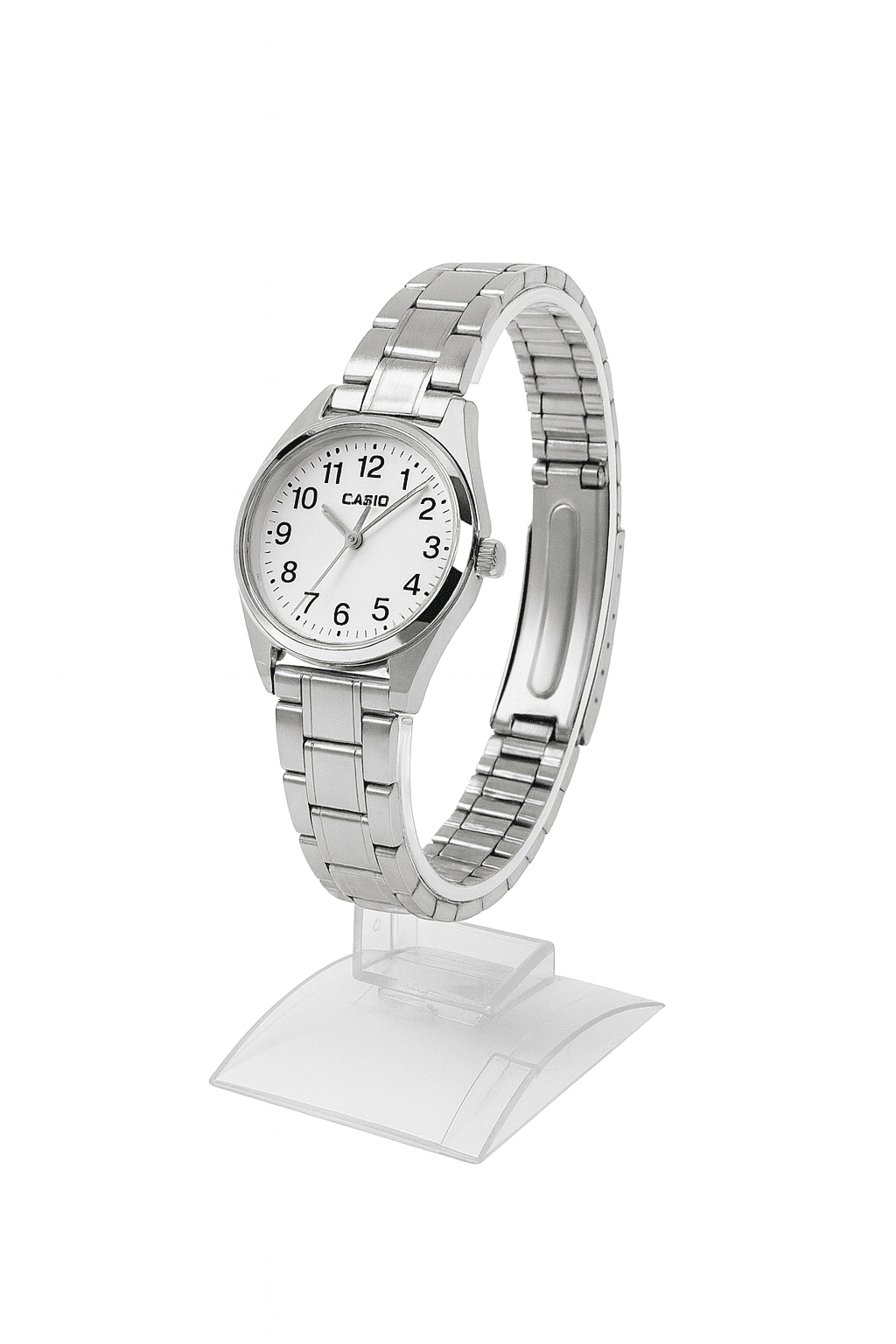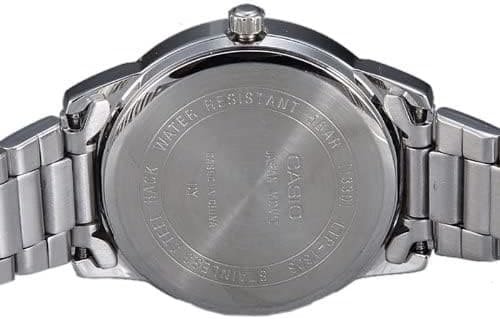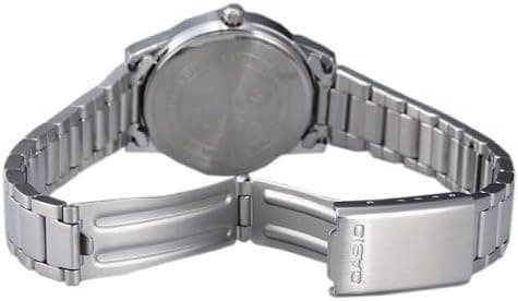 Brand, Seller, or Collection Name Casio Model number LTP-1303D-7BVDF (A762) Part Number LTP-1303D-7BVDF (A762) Item Shape Round Display Type Analog Clasp Deployment Clasp Case material Ion Plated Case diameter 30 millimeters Case Thickness 8 millimeters Band Material Stainless Steel Band width 18 Band Color Silver Dial color White Special features display Item weight 100 g Movement Quartz Water resistant depth 30 Meters