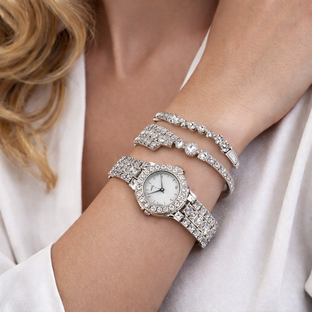 Luxury Watch & Bracelet Gift Set for Women – Elegant Crystal Collection