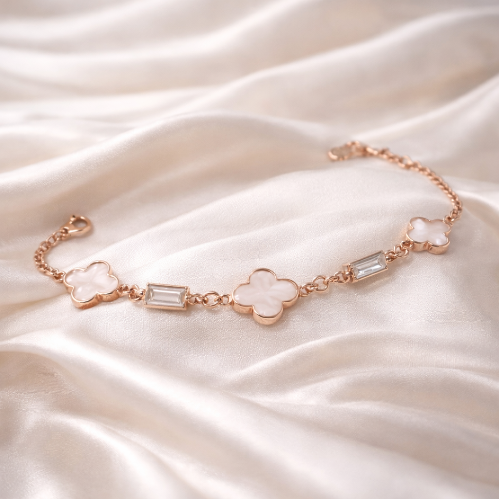 Matching bracelets with clover, butterfly, and minimalist designs