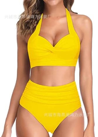 - Tempt Me 2 piece high waist bikini has high-cut legs and a figure-flattering pleated front panel that hides the imperfections you don’t prefer to show.