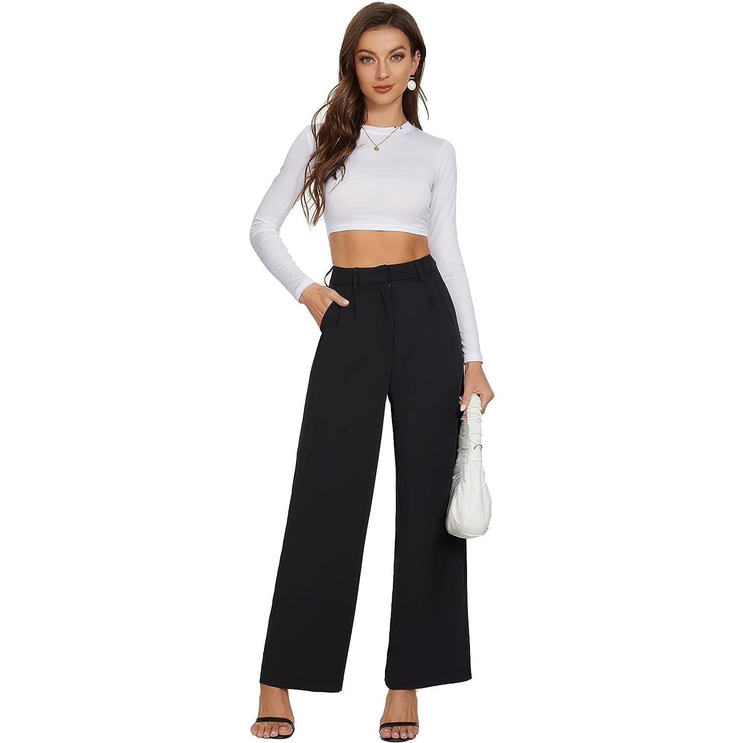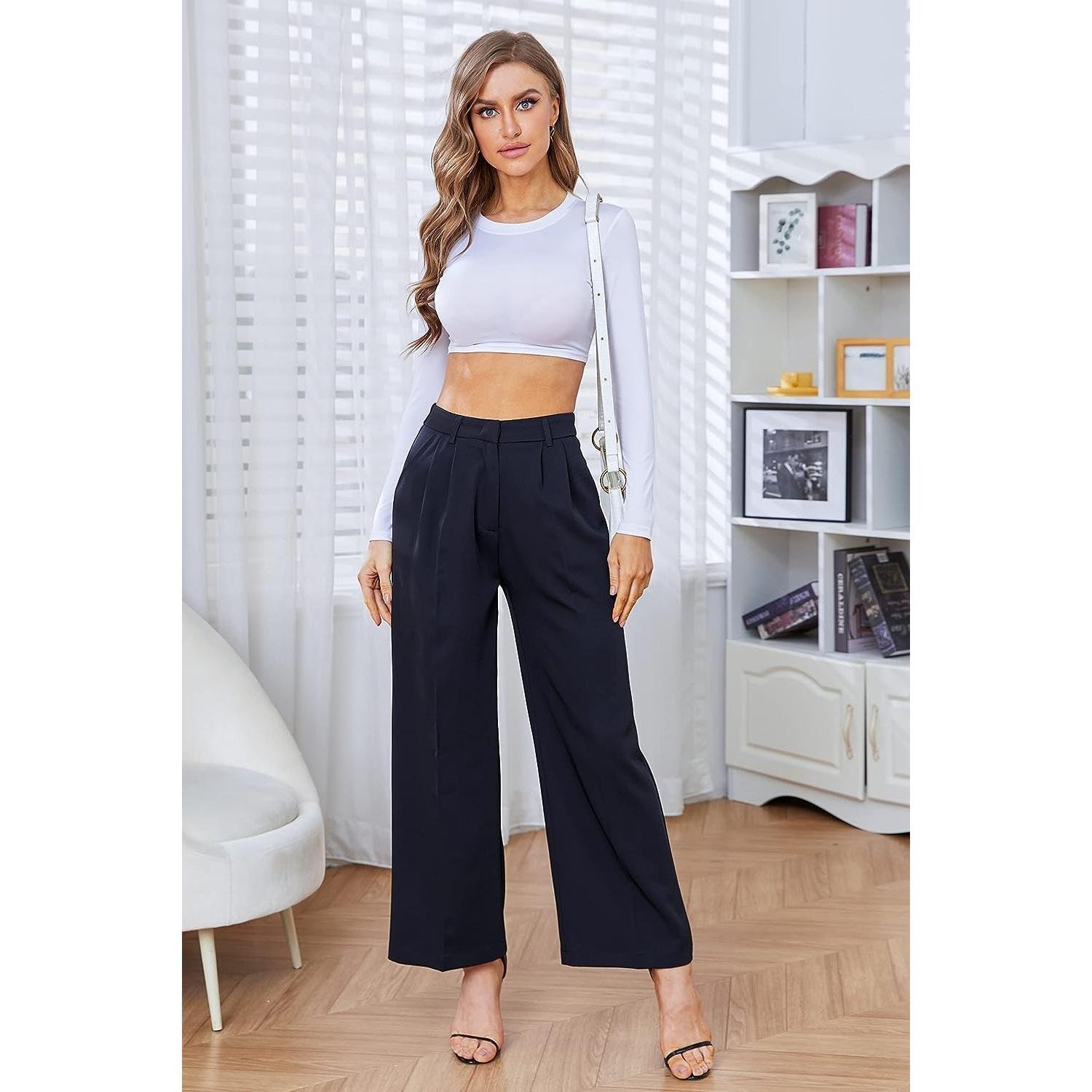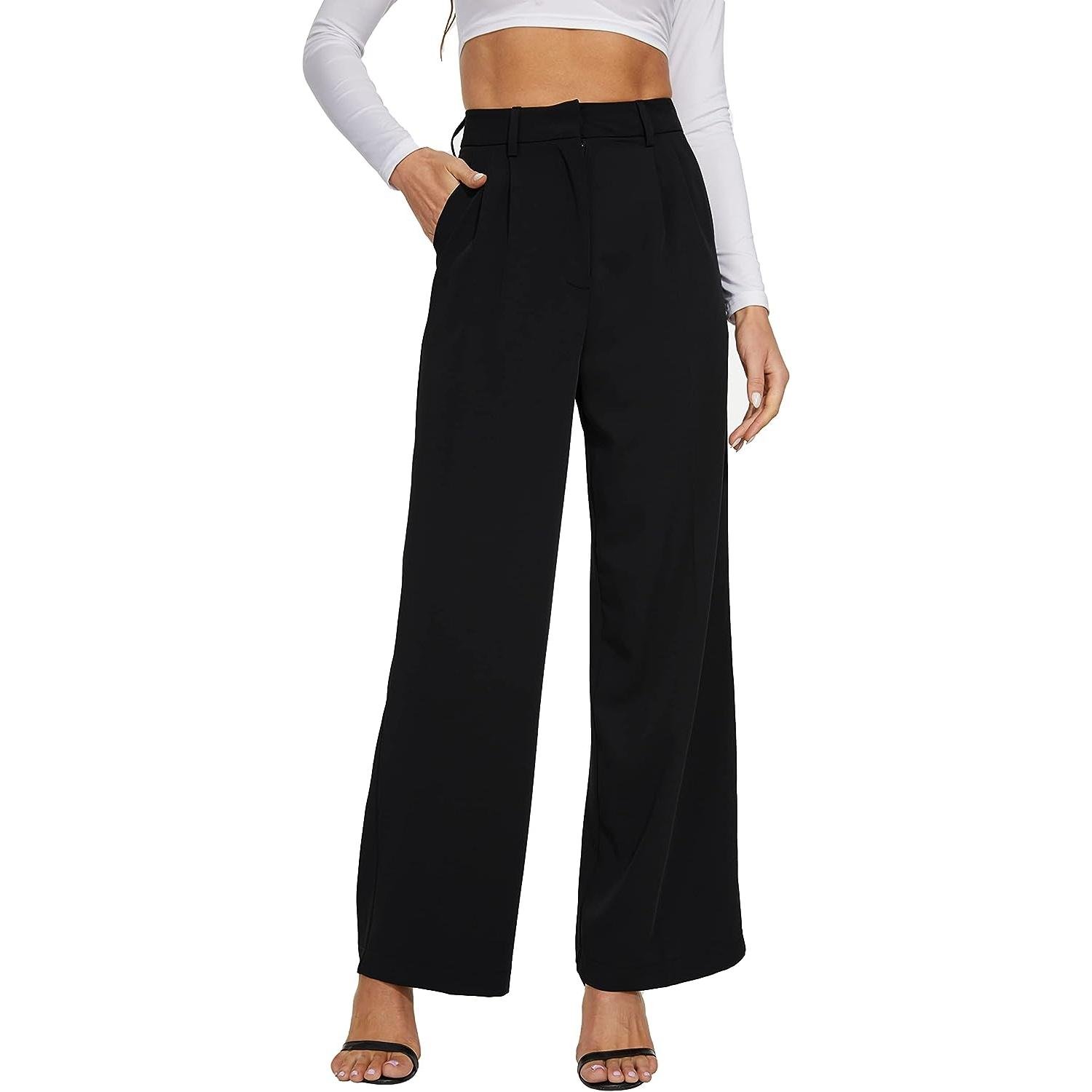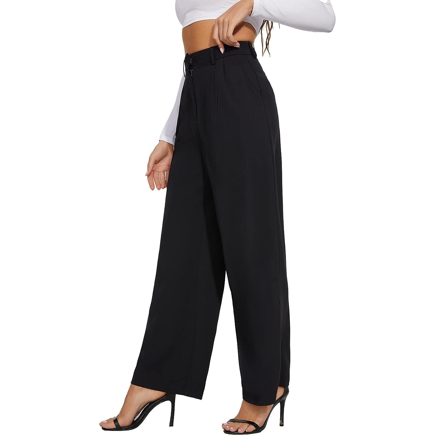 - FEATURE — High-waisted wide leg style, pleated front, loose fit, breathable and soft fabric, zipper closure, two side pockets