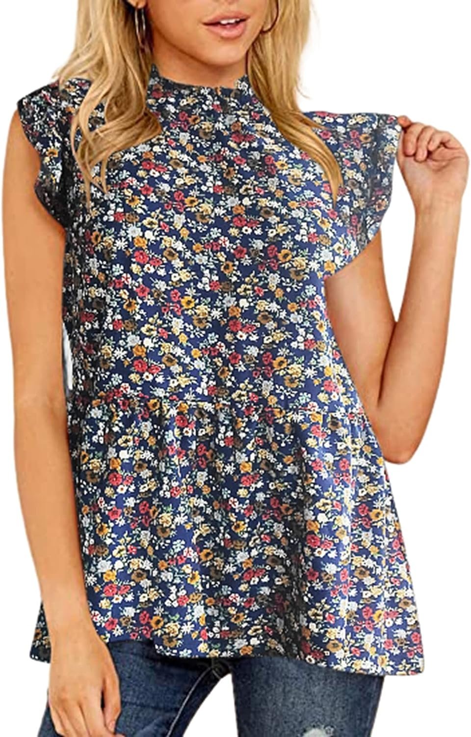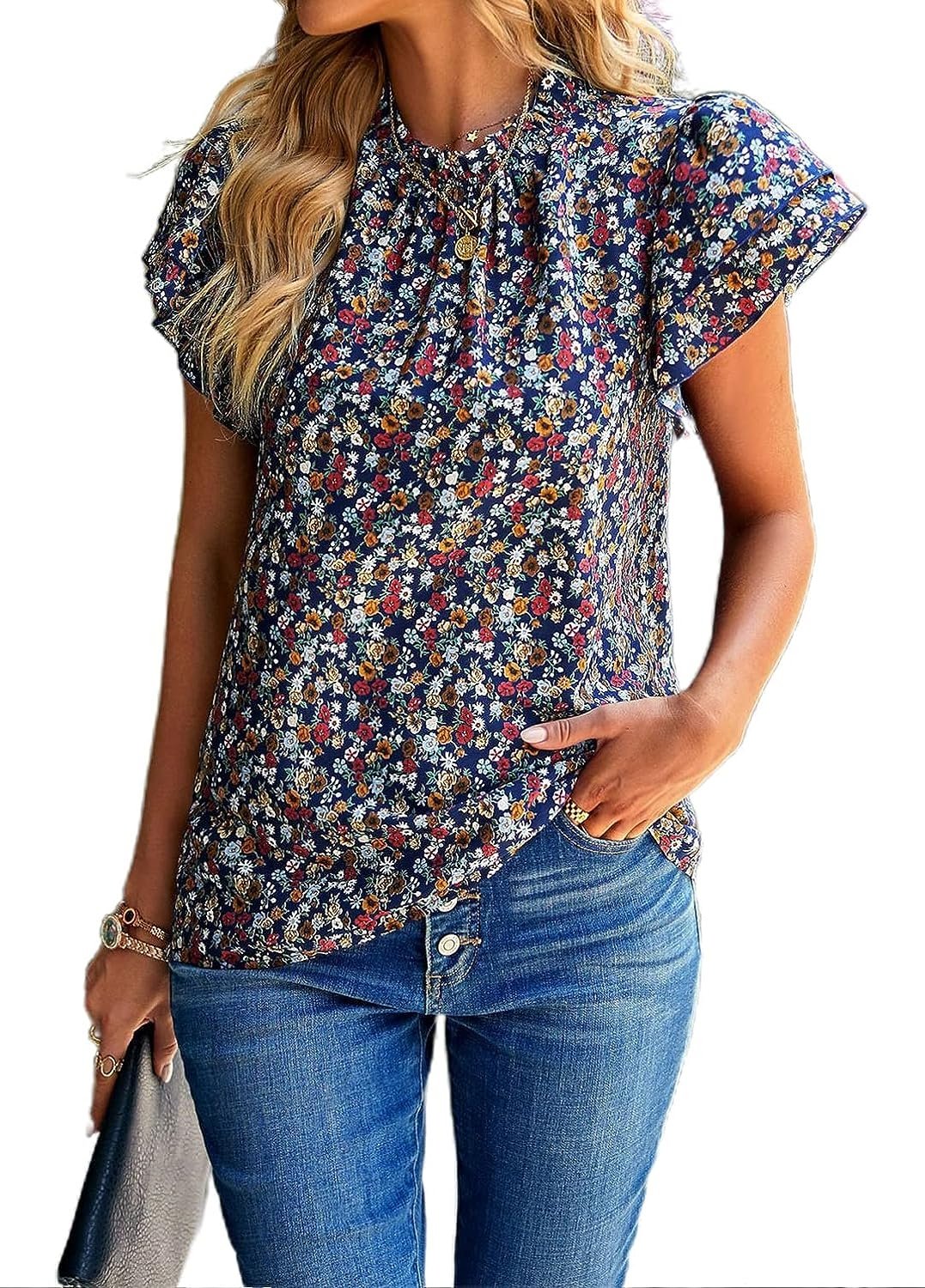 - Features: Ruffle sleeve tops for women, feature with ditsy floral print, ruffle sleeves, shirred neck, keyhole back, frill trim, floral tops for women, make you look more elegant and gorgeous.