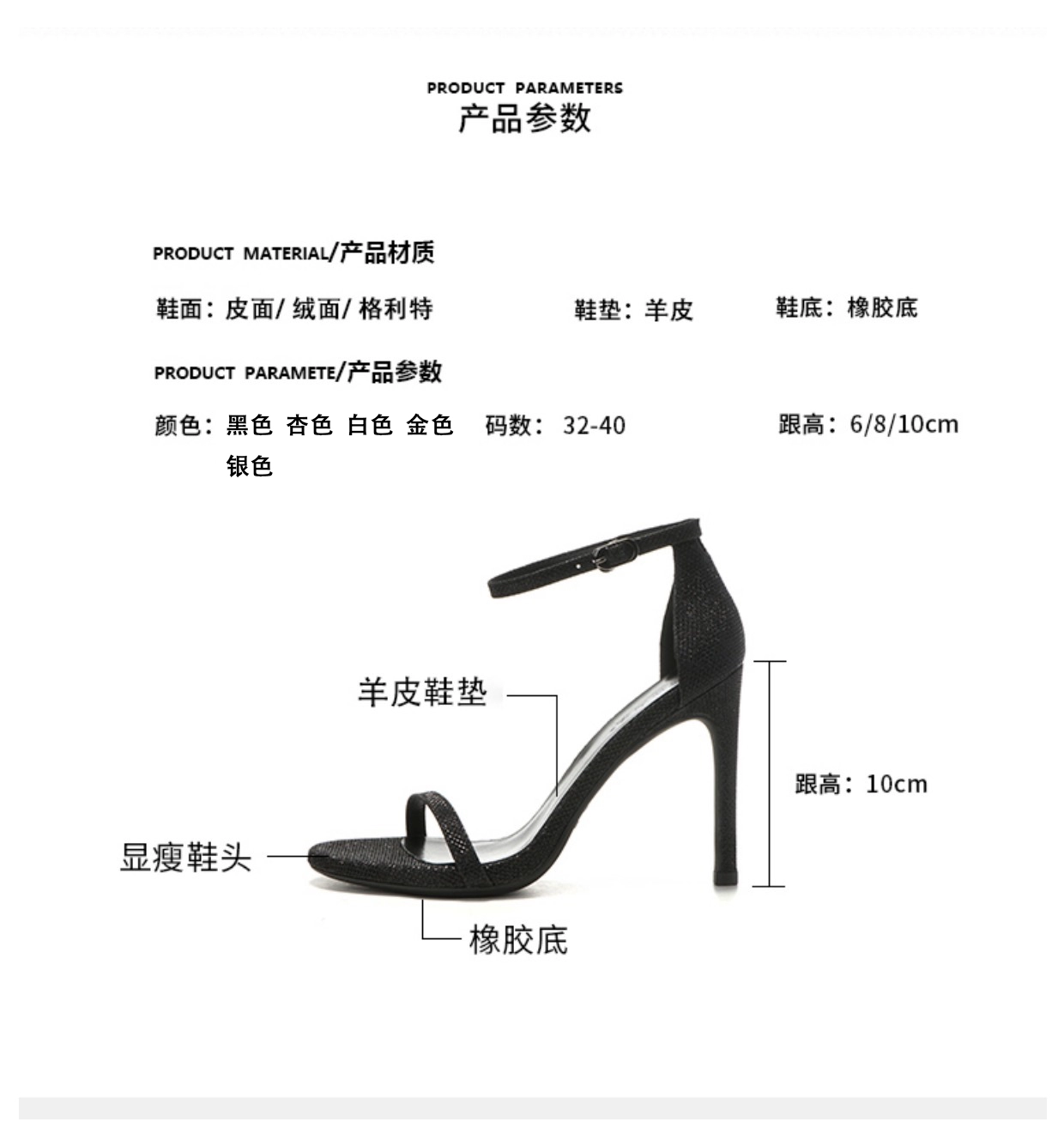 Heel height: high heel (5-8cm)