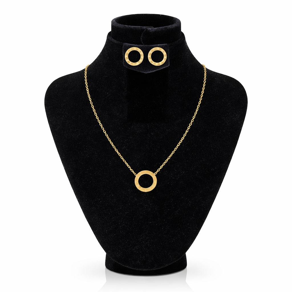 β¨ 10K Gold Plated Roman Numeral Circle Jewelry Set β Necklace & Stud Earrings